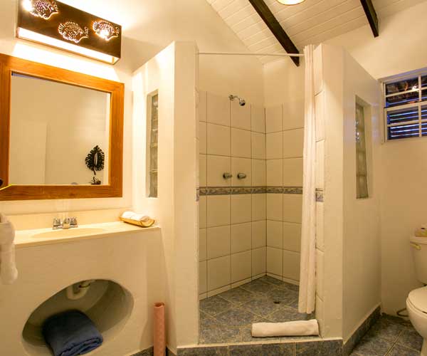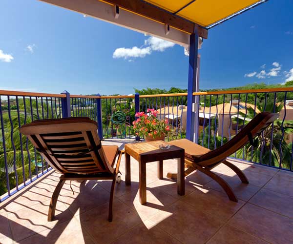 Our Indigo Rooms face the Bay and our enchanting infinity pool. These cozy rooms are located near the dive shop and marina and allow easy access to both the bay view pool and infinity pool. Each room has a spacious and shady balcony with chairs for you to sit back, relax and enjoy the view. The tropical teak furniture and bright Caribbean colours make these rooms very cheerful spaces to relax.